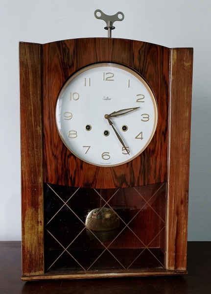 • ANTIGO RELÓGIO DE PAREDE  SILCO -  3 CORDAS - ACOMPANHA CHAVE E PÊNDULO ORIGINAL - CAIXA EM MADEIRA - MARCAS DO TEMPO - NO ESTADO - NÃO TESTADO - MEDINDO 55 X 38 X 19 CM