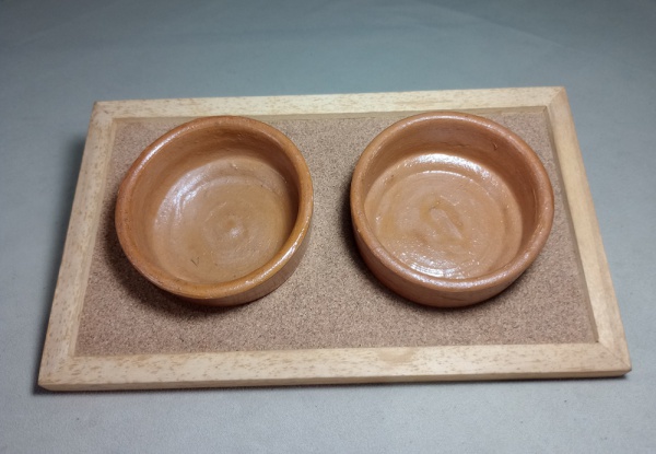 • PETISQUEIRA DE CERÂMICA BASE EM MADEIRA E CORTIÇA - MEDINDO 30 X 17 CM