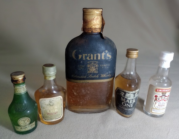 • LOTE COM  05 BEBIDAS EM MINIATURA - LOTE ONE - GRANTS - SMIRNOFF - NO ESTADO