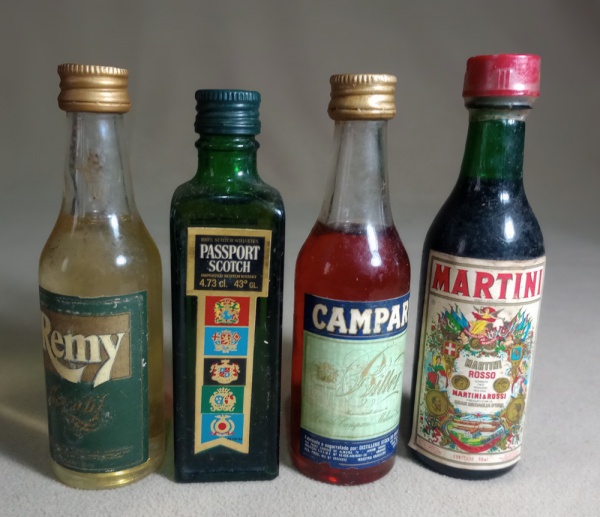 • LOTE COM  04 BEBIDAS MINIATURAS PASSPORT - MARTINI - ST REMY - CAMPARI - NO ESTADO