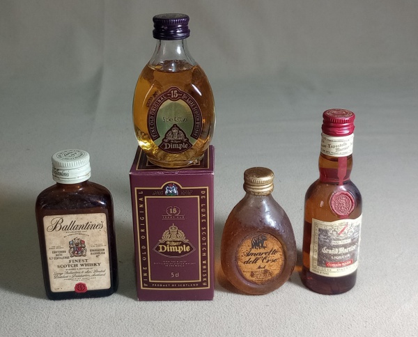 • LOTE COM  04 BEBIDAS MINIATURAS - DIMPLE - GRAND MAENIER - BALLANTINES - AMARETTO DELL ORSO -NO ESTADO