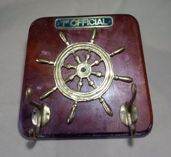 • CHAPELEIRO/PORTA CHAVES - NAÚTICO EM METAL/MADEIRA - MEDINDO 26 X 24 CM - NO ESTADO
