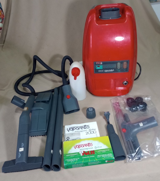 • VAPORIZADOR DE LIMPEZA - MARCA POLTI - VAPORELA LOGICAL SYSTEM 2000 - NÃO TESTADO - NA CAIXA ORIGINAL MEDINDO 38 X 30 X 56 - ACOMPANHA ACESSÓRIOS