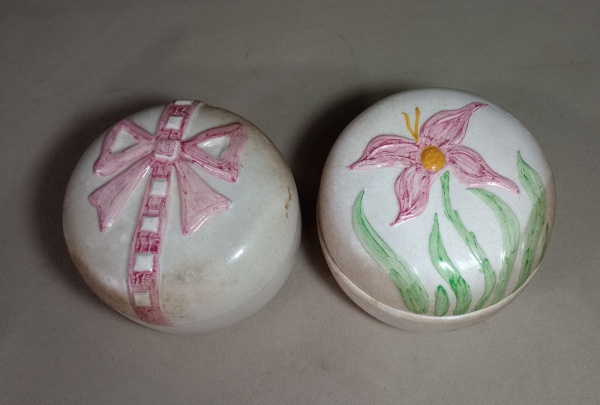 • LOTE CONTENDO 02 POTICHES COM TAMPA DE PORCELANA ESMALTADA - MEDINDO 14 X 9 CM - CADA - NO ESTADO
