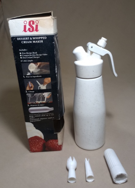 • SIFÃO PARA CHANTILLY - ACOMPANHA BICOS PARA DECORAR - CAIXA ORIGINAL MEDINDO  31 X 9 CM - NO ESTADO