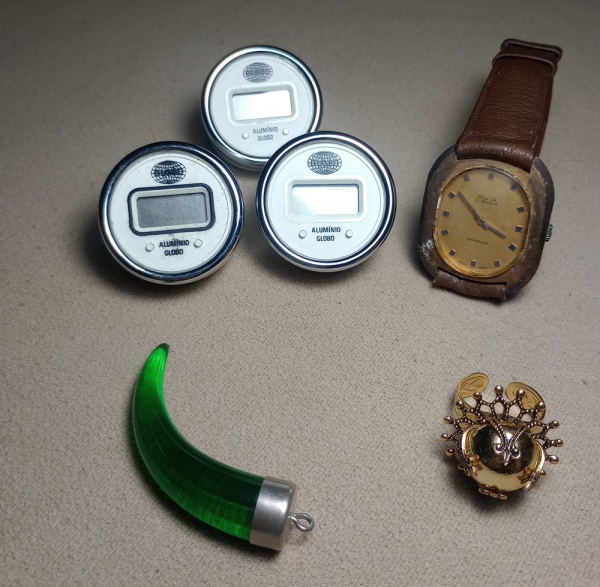 • LOTE COM 06 PEÇAS - SENDO 03 RELÓGIOS PROMOCIONAL  DE MESA - 01 ANEL - 01 PINGENTE 01 RELÓGIO DE PULSO NÃO TESTADO - NO ESTADO