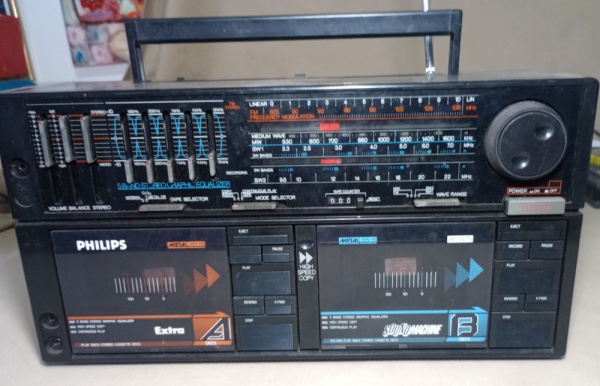 • VINTAGE - RÁDIO GRAVADOR - PHILIPS - SOUDMACHINE - MODELO D8458/30R - NÃO TESTADO NO ESTADO - MEDINDO 39 X 16 X 20 CM -