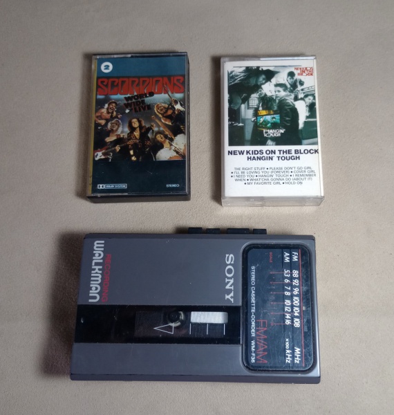 • LOTE CONTENDO 01 RÁDIO WALKMAN DE FITAS  SONY - 02 FITAS K7 DE ROCK - NO ESTADO - NÃO TESTADO